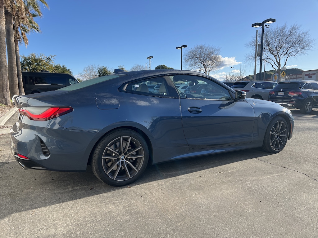 4-Wheel Disc Brakes, ABS brakes, Air Conditioning, Automatic temperature control, BMW Assist eCall, BMW TeleServices, Comfort Access Keyless Entry, Connected Package Pro, Driver Lumbar Support, Dual front impact airbags, Dual front side impact airbags, Emergency communication system: BMW Assist eCall, Front dual zone A/C, Heated Front Seats, Heated Steering Wheel, Hi-Fi Sound System, Live Cockpit Pro w/Navi, Navigation, Navigation System, Premium Package, Radio data system, Rear air conditioning, Rear window defroster, Remote Engine Start, Remote keyless entry, Steering wheel mounted audio controls, Vernasca Leather Upholstery. CARFAX One-Owner. Clean CARFAX. Arctic Race Blue Metallic 430i 2D Coupe RWD 8-Speed Automatic Sport 25/34 City/Highway MPG 2.0L 4-Cylinder TwinPower Turbo