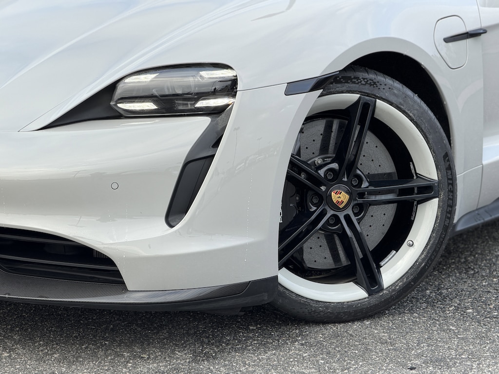 ABS brakes, Alloy wheels, Compass, Electronic Stability Control, Front dual zone A/C, Front Ventilated Seats, Heated door mirrors, Heated front seats, Heated rear seats, Illuminated entry, Ionizer, Lane Change Assist (LCA), Low tire pressure warning, Navigation system: Porsche Communication Management (PCM), Porsche Communication Management, Power Folding Exterior Mirrors, Premium Package, Remote keyless entry, Storage Package, Surround View, Thermally & Noise Insulated Glass (VW5), Traction control. CARFAX One-Owner. Clean CARFAX. Chalk Turbo S 4D Sedan AWD 2-Speed Automatic Electric Motor